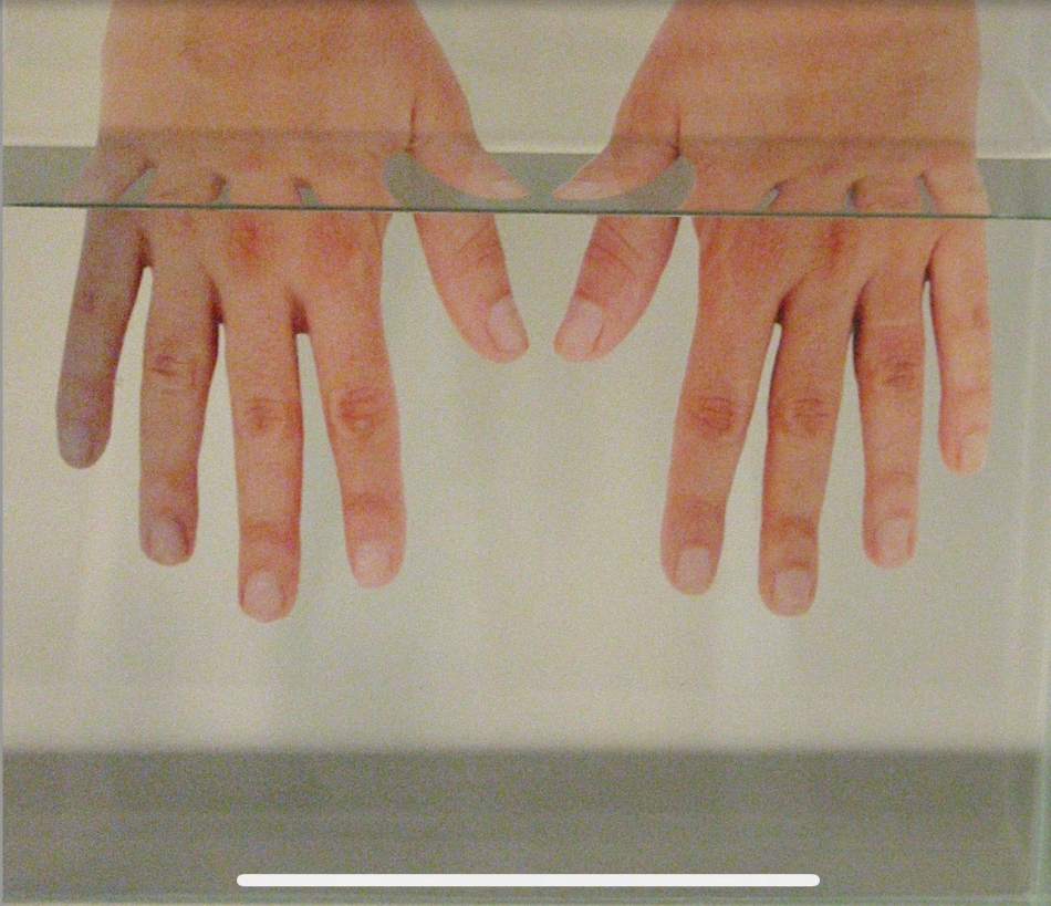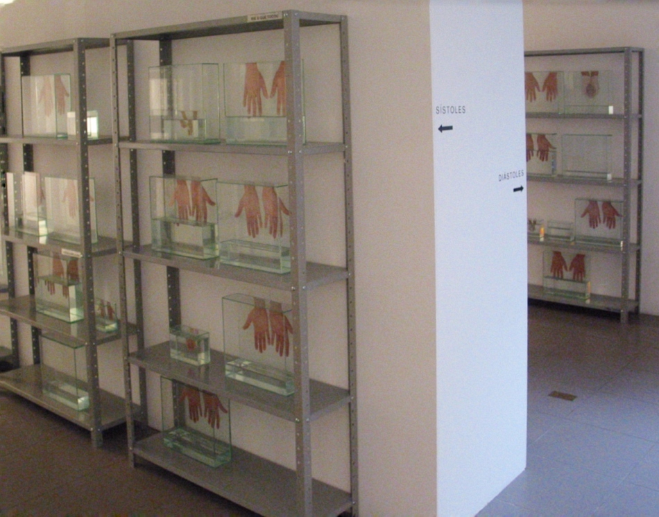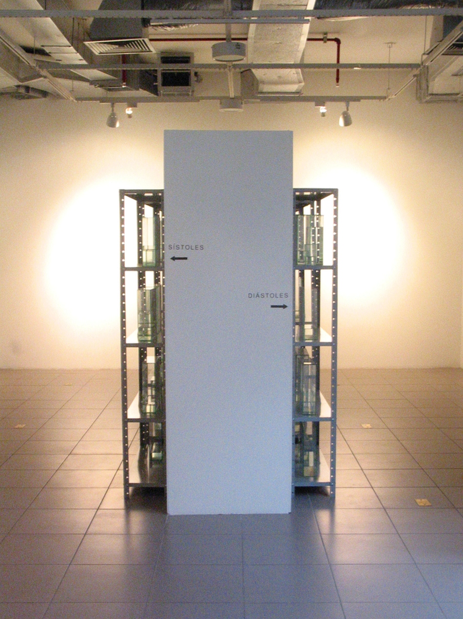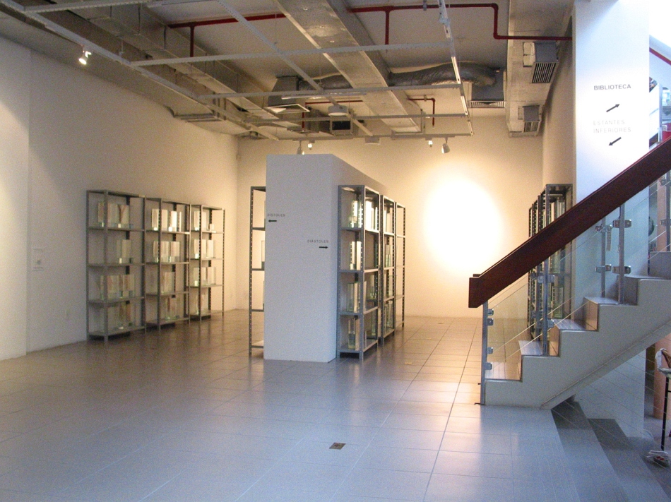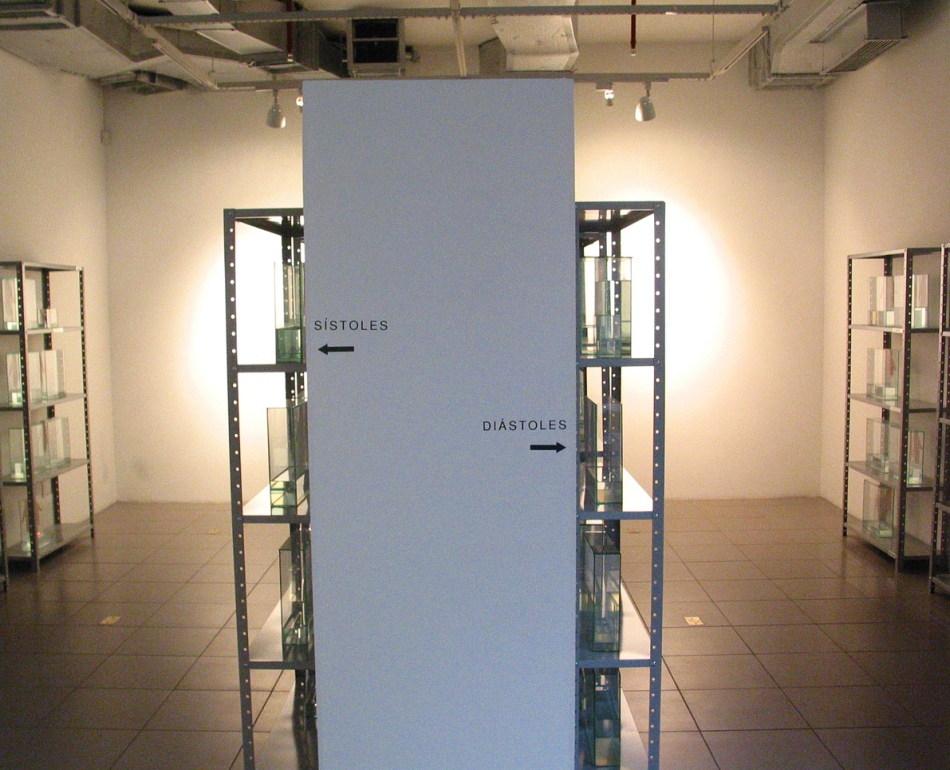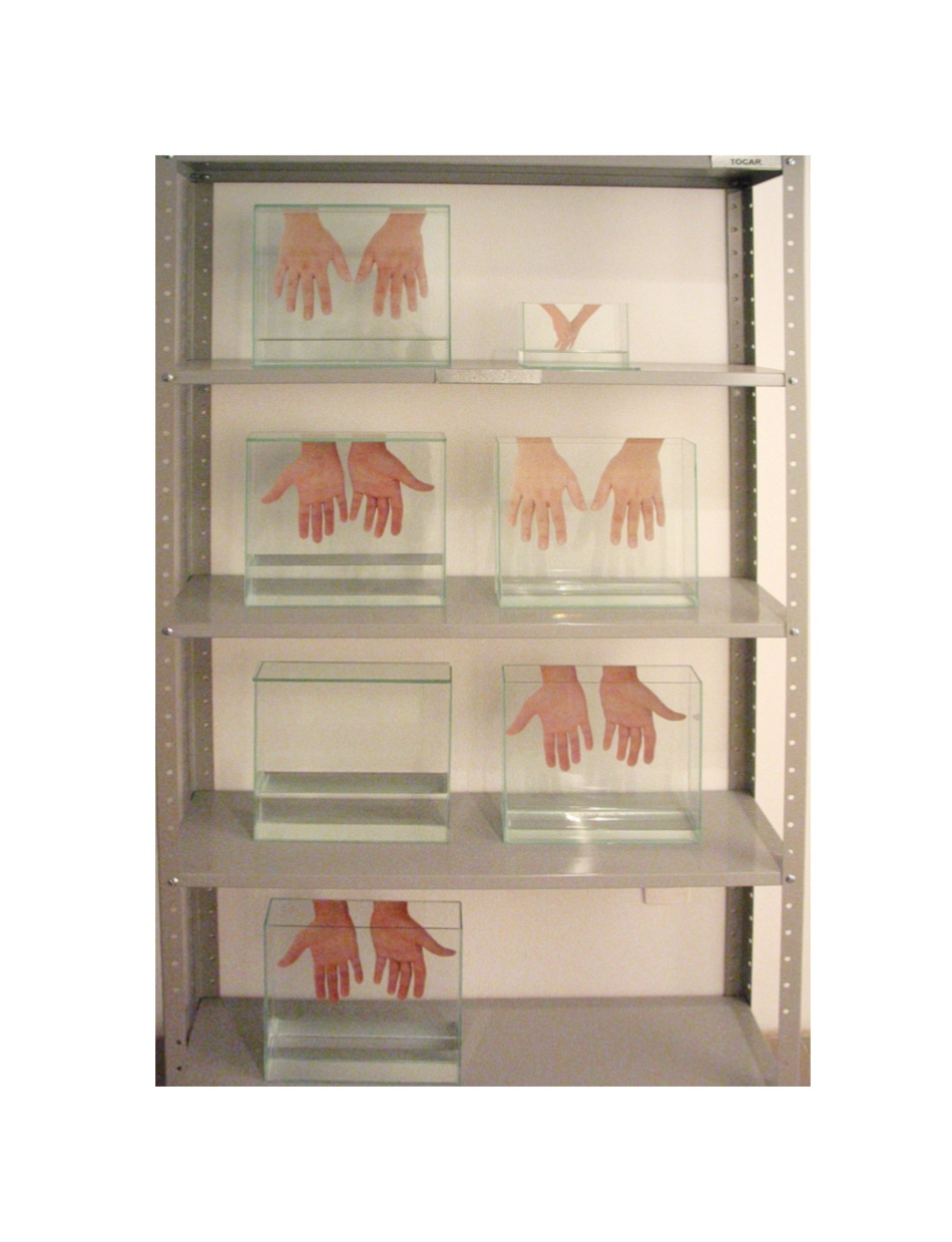 Instalação que foi um dos quatro projetos selecionados pelo IV Concurso de Artes Plásticas do Instituto Goethe em 2003, em Porto Alegre. A instalação cria um paralelo entre a sala de exposições e a biblioteca da instituição, que se localiza no plano imediatamente superior através de sinalização adesiva, a instalação de uma parede central na galeria, dividindo-a em dois corredores, o uso de 12 estantes de aço e aproximadamente 75 tanques de vidro contendo água, e retratos de mãos.