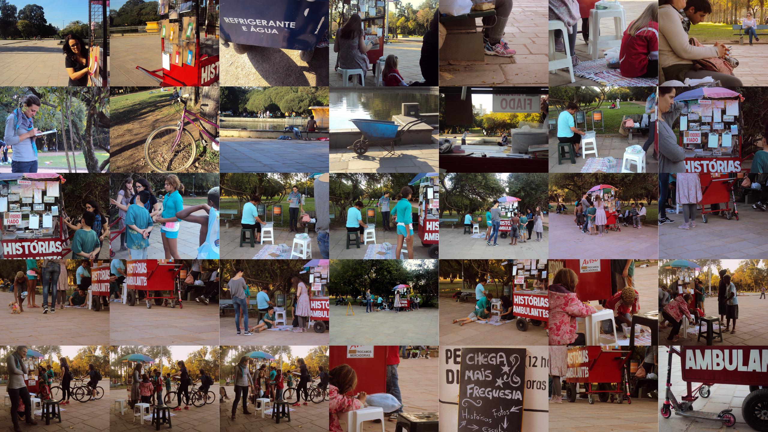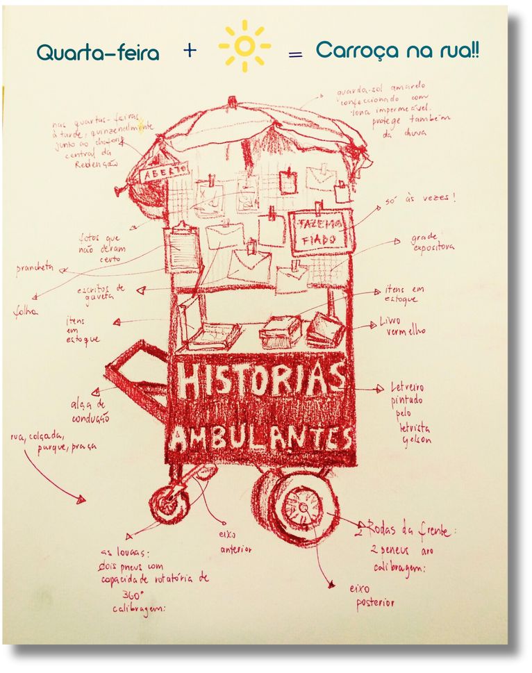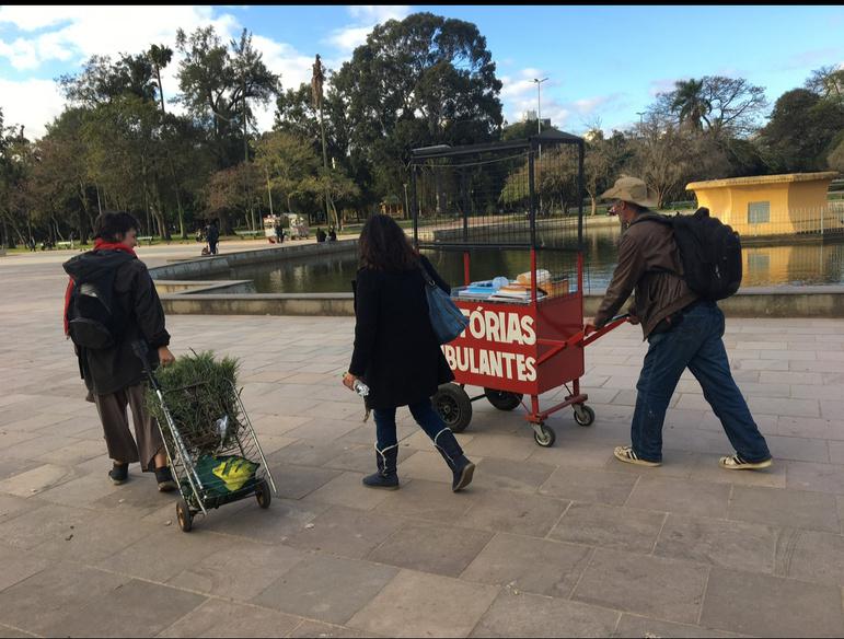 A Carroça de Histórias Ambulantes é uma banca itinerante de escambo, também chamada de ‘A Carroça’, que atuou nas ruas da cidade de Porto Alegre entre meados de 2007 e dezembro de 2019, oferecendo aos transeuntes uma coleção de produtos singulares gerados em parceria com seus colaboradores espontâneos. A moeda necessária para levar o item desejado era a disponibilidade do interlocutor de contar uma história à/ao atendente de plantão. Os relatos recebidos retornavam ao acervo da Carroça como novos produtos, gerando uma microeconomia poética, que fez circular fragmentos sensíveis, memórias e ficções anônimas.