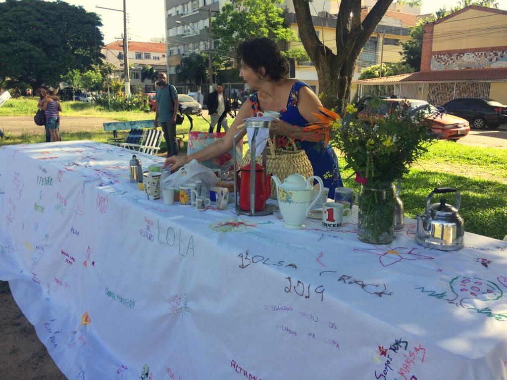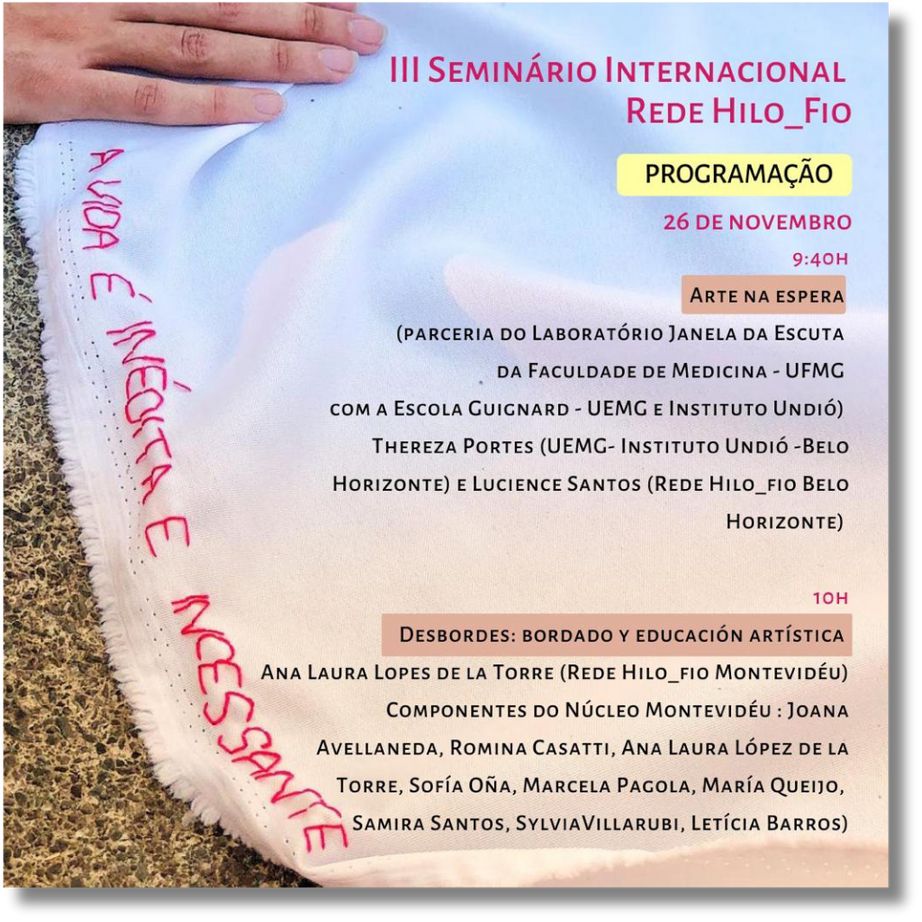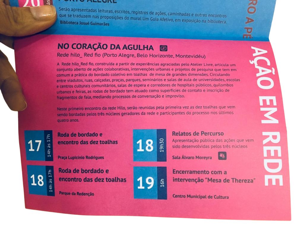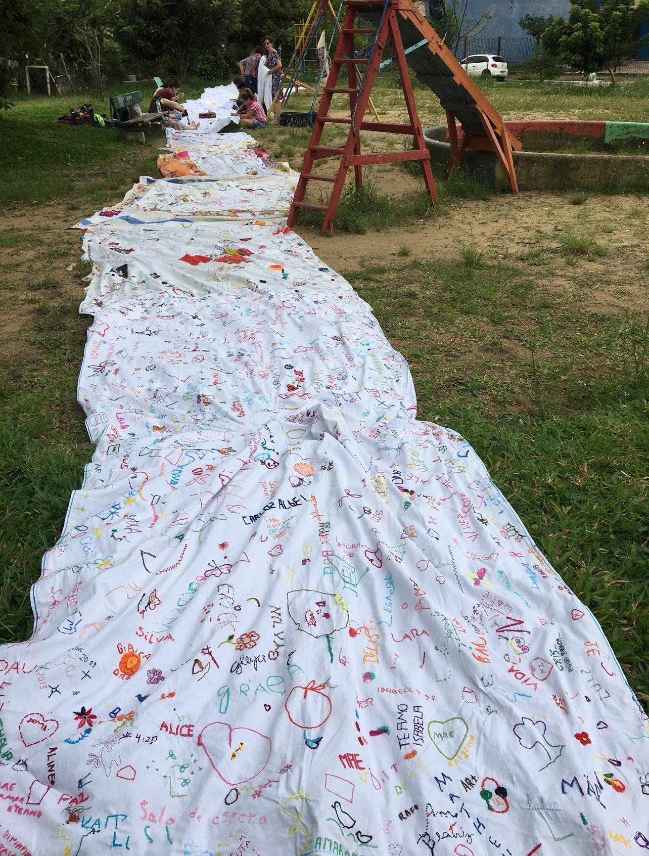 – Este projeto faz parte da Rede Hilo_fio, uma articulação de ações colaborativas, intervenções urbanas e projetos de pesquisa que tem em comum o bordado livre em tecidos de grandes dimensões por coletivos abertos em espaços públicos (ruas calçadas, praças, parques, escolas, universidades, hospitais, feiras). São contextos que enlaçam os campos da arte, cultura, educação, saúde e cidadania. Atualmente a rede Hilo_fio conta com núcleos ativos em Porto Alegre, Montenegro, Rio de Janeiro, Belo Horizonte, Montevideo (Uruguai) e Quilmes (Argentina), envolvendo aproximadamente 200 pessoas diretamente.