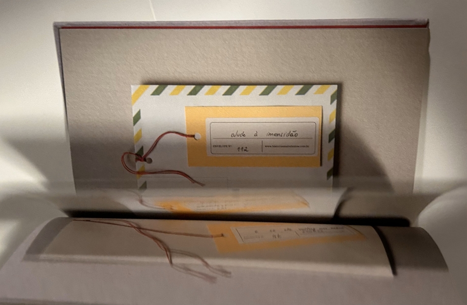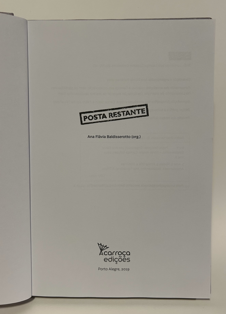 Posta Restante é um livro-poema nascido do acervo de memória dos escritos que circularam na Carroça de Histórias Ambulantes por meio de multas mãos e vozes ao longo de muitos anos (2013-2019). Estes escritos trazem à presença uma dimensão de incomunicabilidade , de impossibilidade, seja por sua natureza confessional, de segredo, seja por sua condição de abandono ou esquecimento, por sua incompletude ou por sua condição de limbo e desvio, de não pertencimento a uma rede já estabelecida de circulação de bens simbólicos. Para esta publicação, foi selecionada uma amostra de 92 reproduções fotográficas dessa série. As imagens foram dispostas em pares dialógicos que fazem conversar pequenos fragmentos de texto, aludindo a essa espécie de correio anônimo que se produz entre desconhecidos na rua, através de frágeis envelopes de papel.