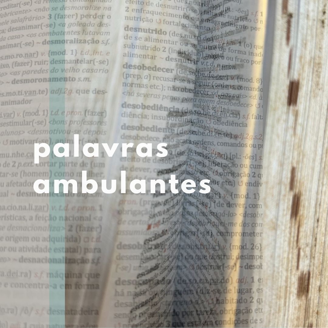 Palavras ambulantes é um atelier de leitura, escrita e escuta formatado como um programa de encontros mensais híbridos . Criados a partir da experiência dos projetos Carroça de histórias ambulantes e No coração da agulha, estes encontros foram pensados como um espaço para movimentar a linguagem, através de leituras compartilhadas, de práticas de escrita e do aprendizado da escuta. A cada encontro é proposto um tema, e trazemos convidados para colocar a a palavra em circulação a partir da leitura de textos próprios e/ou alheios, seguidos por uma roda de reververberações e acompanhado de proposições mensais para acionar a escrita.